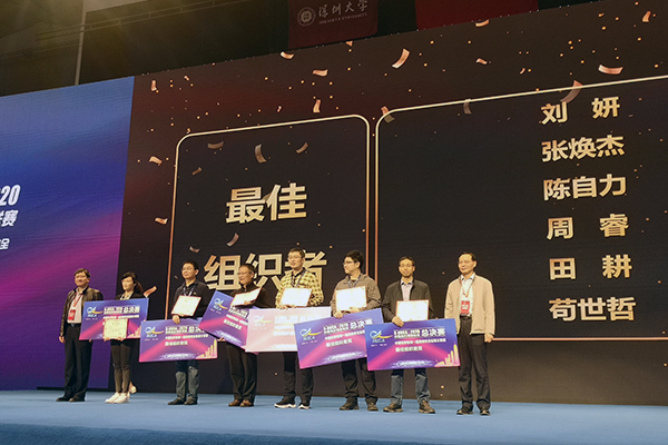 12月9日上午,大賽頒獎儀式在深圳大學體育館隆重舉行,中國科學院辦公廳副主任王樹志、中國網絡空間安全協會副秘書長趙宏志、中國科學院信息工程研究所所長孟丹、深圳大學副校長徐晨等領導出席了頒獎儀式并為獲獎團隊、最佳組織者頒獎。國家信息安全研究中心馮燕春將軍、深圳大學陳國良院士做了信息化及網絡安全的專題報告,探討了我國網絡安全技術自主創新及新一代信息技術發展的問題,并對網安學科建設和國際交流合作提出了殷切希望。