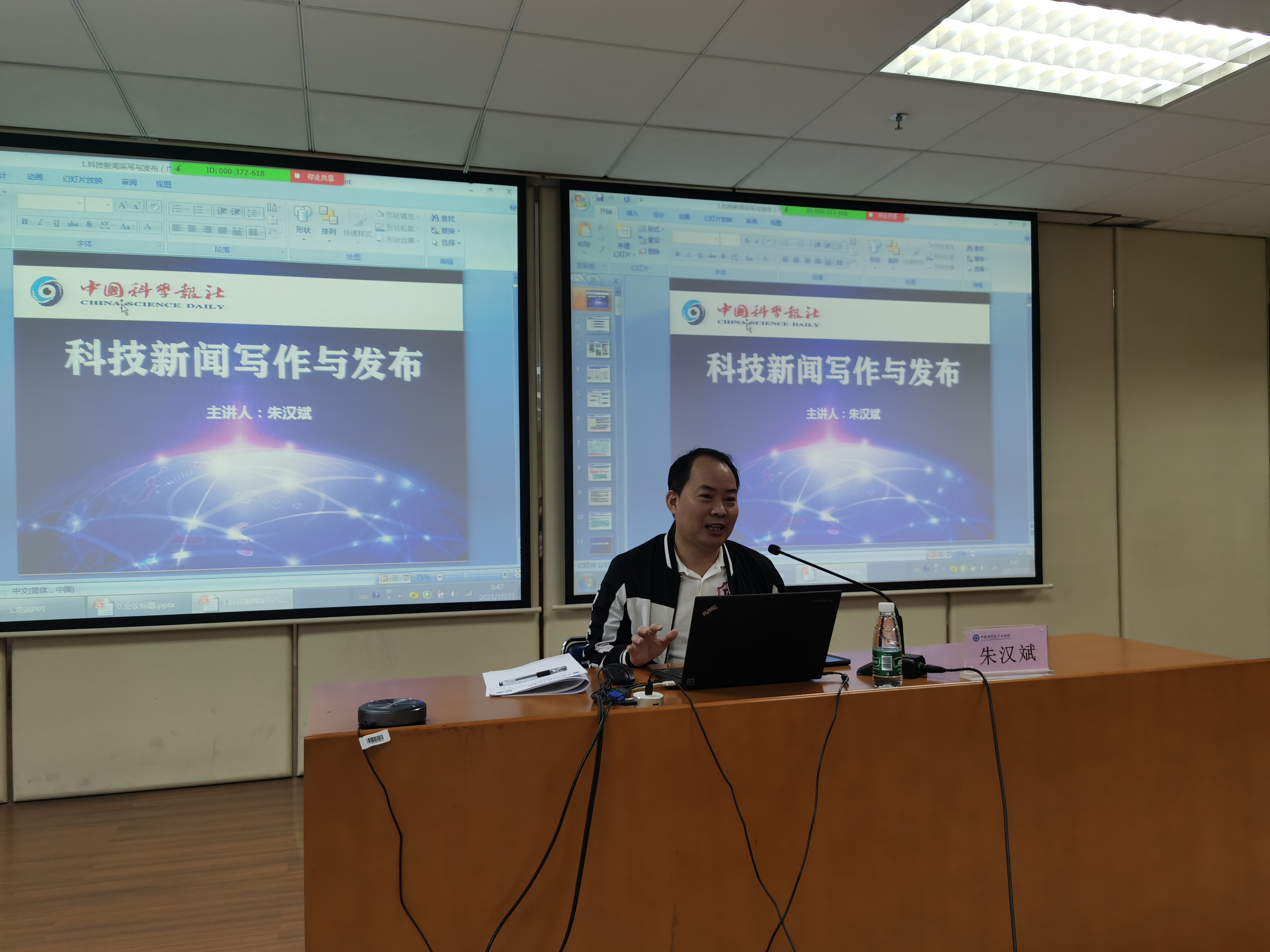 本次培訓邀請了中國科學報廣東記者站站長朱漢斌,光明日報廣東記者站站長吳春燕,廣東省科協科技普及部部長吳仕高,院科學傳播局科技攝影聯盟副理事長謝震霖分別圍繞《科技新聞寫作和發布》、《網絡危機應對和輿論引導》、《為廣東不斷創造新輝煌厚植沃土》、《科技攝影芻議》作專題報告,為參會人員提供理論基礎和業務經驗支撐。