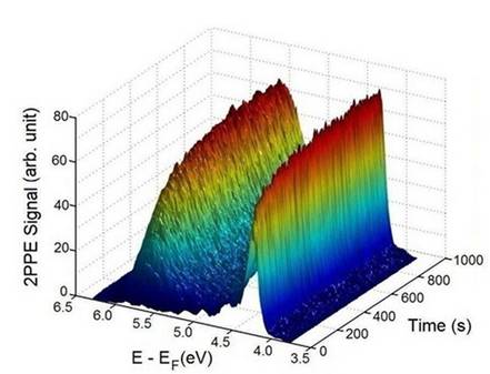 單層甲醇覆蓋的TiO2(110)在400nm飛秒光照射下的實時雙光子光電子能譜