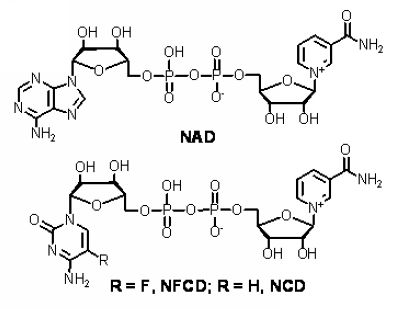 煙酰胺腺嘌呤二核苷酸(NAD)是生命體系最重要的輔酶之一,廣泛參與氧化還原、物質(zhì)和能量代謝及信號傳導(dǎo)等過程。NAD與生物大分子相互作用存在著比較保守的分子識別模式。創(chuàng)建非天然的輔酶識別模式,對調(diào)控生命過程、設(shè)計細胞工廠的功能和生物催化研究具有重要意義。我所1816組研究人員在輔酶改造研究方向進行了長時間的探索和積累,合成了系列NAD類似物,并采用半理性設(shè)計策略構(gòu)建了NAD-依賴型蘋果酸酶(ME)的突變體文庫,通過篩選獲得了專一識別輔酶類似物——煙酰胺5-氟胞嘧啶二核苷酸(NFCD)或煙酰胺胞嘧啶二核苷酸(NCD)的蘋果酸酶突變體,建立了新的輔酶識別模式。在此基礎(chǔ)上,研究人員成功將該模式移植到其他氧化還原酶,如D-乳酸脫氫酶(DLDH)和蘋果酸脫氫酶,均獲得了具有NFCD偏好性的突變體,表明該非天然輔酶識別模式具有通用性。通過雙酶耦合反應(yīng),研究人員還實現(xiàn)了NFCD循環(huán)再生。這項研究首次獲得具有生物正交(bioorthogonal)特性的人工氧化還原酶體系,為選擇性調(diào)控細胞內(nèi)特定NAD-依賴型生物大分子的功能及系統(tǒng)生物學(xué)和合成生物學(xué)研究提供了全新思路,對高效獲取液體生物燃料和高值生物基化學(xué)品具有重要意義。