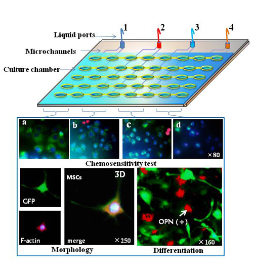 生物相容性納米纖維具有模擬細胞外基質成分、可實現細胞三維培養等重要功能。該研究將微流控技術與納米纖維材料相結合,以獨特方式制備了具有可控圖案化功能的纖維結構,成功地實現了微空間條件下的陣列區域化細胞三維培養,并進一步研究了間充質干細胞在微環境中生長、分化等生物學行為,同時也對肝癌細胞的化療藥物敏感性進行了評價。