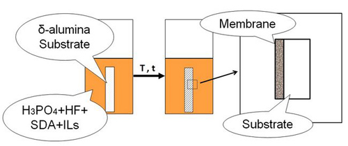 田志堅研究員領導的研究組近年來在磷酸鋁分子篩的合成研究方面取得了很好的成果,開發的一種磷酸鋁分子篩負載的貴金屬催化劑在中國石油20萬噸/年潤滑油基礎油異構脫蠟裝置實現工業應用,采用離子熱法合成出了迄今為止最大孔徑的結晶磷酸鋁分子篩DNL-1。在深入理解離子熱合成磷酸鋁分子篩合成規律的基礎上,該課題組進而開發出一種離子熱載體自轉晶法,成功制備出AEL、AFI、CHA、LTA等結構的一系列磷酸鋁分子篩膜。該方法以離子液體為反應介質,合成過程系統自生壓力極低,以氧化鋁載體兼為鋁源和支撐體,制備過程不影響載體的強度和形狀,是一條簡便、高效、安全的適合大規模工業化制備磷酸鋁分子篩膜的新方法。