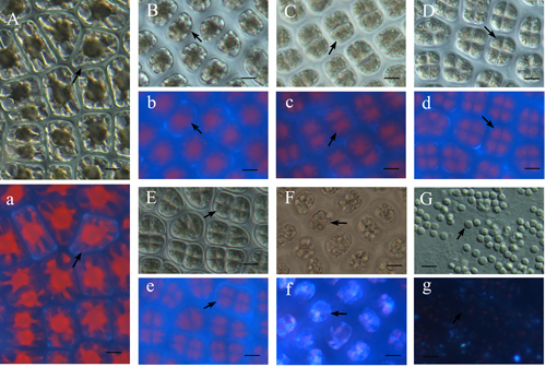 2、Morphological and photosynthetic variations in the process of spermatia formation from vegetative cells in Porphyra yezoensis Ueda (Bangiales, Rhodophyta) and their responses to desiccation,Planta(2012), 235:885–893。