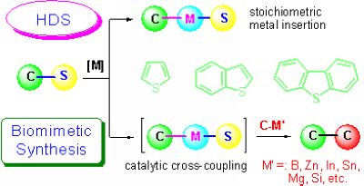 過渡金屬促進惰性C-S鍵的催化活化與轉化研究在有機合成與石油煉制工業中越來越受到重視。均相過渡金屬化合物可以用于難脫硫有機硫化物如噻吩、苯并噻吩和二苯并噻吩等的C-S鍵斷裂機理研究。使過渡金屬促進的有機硫化物的反應能在催化條件下進行將有利于開發新的更高效的石油深度加氫脫硫(HDS)煉制工藝技術以及發展生物模擬有機合成新方法學。本綜述總結了近年來過渡金屬化合物對惰性C-S鍵的插入反應研究以及過渡金屬促進的經由C-S鍵活化的交叉偶聯反應研究成果。大連化物所的其他相關研究成果也受到了相應的關注與述評。