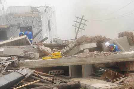 廢墟搜索與輔助救援機器人在模擬災難現場工作