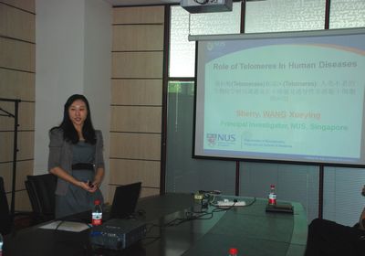 王雪瑩作了題為“端粒酶(Telomerase)和端區(qū)(Telomeres): 人類不老的生物化學研究課題及在干細胞及誘導性多潛能干細胞的應用”的精彩報告,介紹了在細胞分裂時起到保護染色體完整自我復制的端粒,以及形成端粒的端粒酶在衰老、腫瘤發(fā)生發(fā)展、以及干細胞分化中的作用。