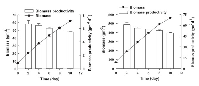 該研究結果表明,基于光能稀釋的反應器結構并以生物膜形式貼壁培養將是解決布朗葡萄藻培養效率瓶頸的重要手段。