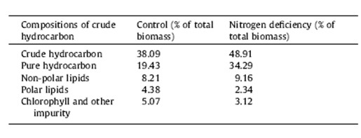 表1 全氮和缺氮培養基貼壁培養下葡萄藻細胞的油脂和烴含量