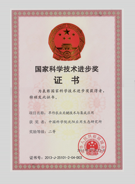 由中國科學院沈陽應用生態研究所作為主要單位參加的“旱作農業關鍵技術研究與集成應用”項目為國家“九五”、 “十五”和“十一五”重點科技攻關項目成果,獲2013年度國家科技進步二等獎。該項目由中國農業科學院主持,全國共十幾家單位參加,沈陽生態所排第三名。該獎項的獲取鞏固和加強了研究所在旱作農業領域的學術地位。