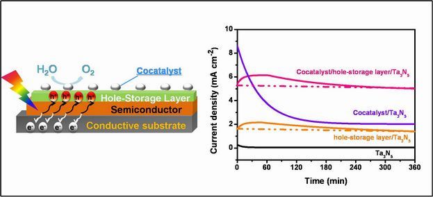 近日,中科院大連化學物理研究所催化基礎國家重點實驗室及潔凈能源國家實驗室李燦院士領導的太陽能研究團隊在“太陽能光電催化分解水制氫”研究方面取得新進展。在以Ta3N5為基礎的半導體光陽極研究中,發現“空穴儲存層”電容效應,藉此設計并獲得了高效穩定的太陽能光電化學分解水體系,相關研究成果以通訊形式在線發表在近期的《德國應用化學》雜志上(Guiji Liu, Jingying Shi, Can Li, et al., Angew. Chem. Int. Ed., DOI:10.1002/anie.201404697)。