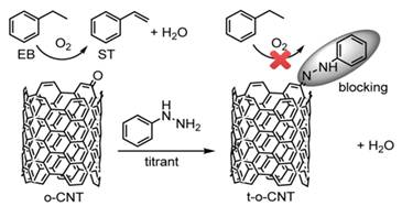 圖1 納米碳催化乙苯氧化脫氫反應活性中心原位化學滴定過程示意圖