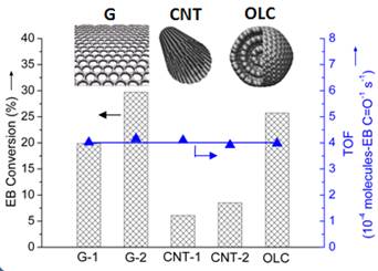 圖3 不同形貌納米碳材料催化乙苯氧化脫氫反應轉化率和本征活性對比