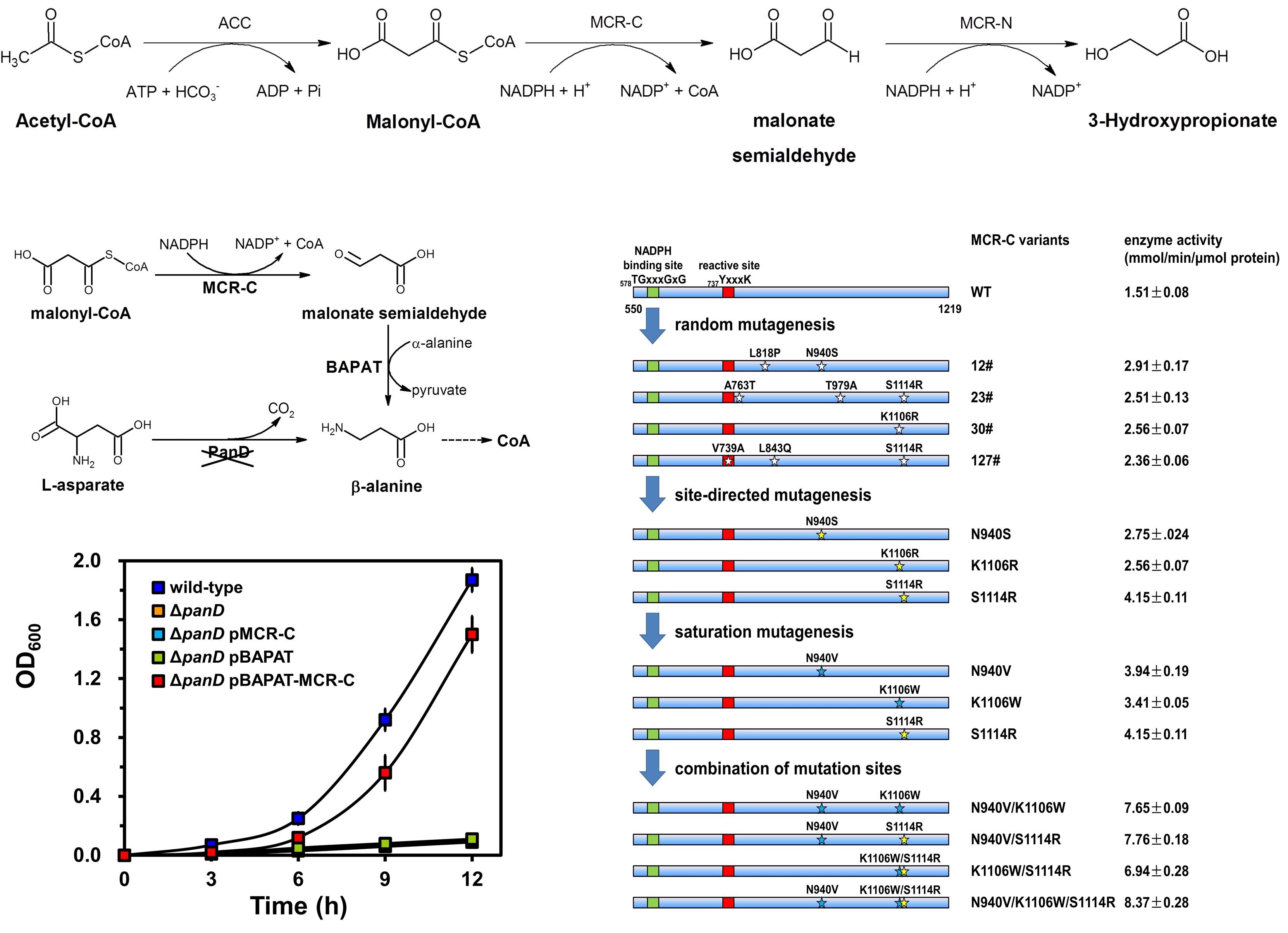 2. Liu C, Wang Q, Xian M, Ding Y, Zhao G. 2013. Dissection of malonyl-coenzyme A reductase of Chloroflexus aurantiacus results in enzyme activity improvement. PLoS One. 8(9):e75554. Doi: 10.1371/journal.pone.0075554.