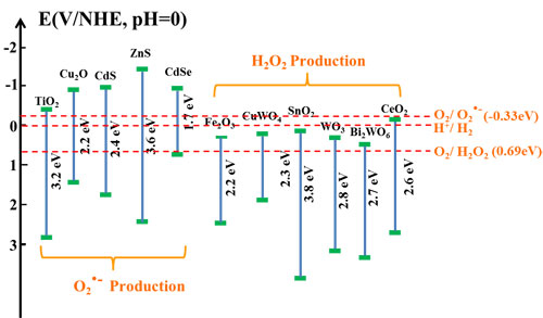 圖4 常見半導體光催化材料的能帶結構示意圖。