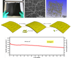三維空心碳纖維泡沫照片,三維空心碳纖維泡沫與硫/多壁碳納米管/炭黑納米團簇形成的復合結構SEM和XRM分析、示意圖及其電化學性能