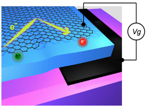 圖1,電子在彈道輸運石墨烯pn結界面發生門電壓可控正負折射示意圖。