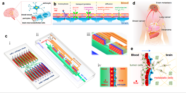 血腦屏障(blood-brain barrier,BBB) 是介于人腦中血液和腦組織之間的一道生理屏障,對維持中樞神經系統的生理活動和腦內微環境的穩態至關重要。研究表明,血腦屏障功能異常與阿爾茲海默病(老年性癡呆)、腦腫瘤和帕金森病等腦疾病的發生密切相關。血腦屏障的結構致密性和高選擇性使大多數藥物分子難以進入腦組織,在一定程度上限制了針對中樞神經系統藥物的研究與開發。因此,建立有效可靠的體外血腦屏障系統,解決現有二維細胞及動物模型與體內偏差較大的不足,一直是新藥開發領域亟待解決的關鍵問題。