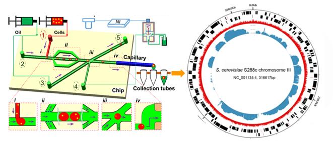 第三,在污染控制方面,FOCOT平臺涉及部件少,體積小型化,相對封閉,故在實驗過程中,能夠方便地實現(xiàn)超潔凈環(huán)境空間控制、芯片消毒等操作,嚴格控制環(huán)境DNA的污染。對分離獲取的單個酵母細胞進行全基因組擴增與測序后結(jié)果顯示,99%的有效序列可以與參考基因組匹配,表明該方法能有效避免環(huán)境中微生物帶來的DNA污染,平均基因組覆蓋率達到43.3%,與在昂貴的超凈空間設施中采用FACS等大型儀器系統(tǒng)分離獲取單細胞所獲得的測序結(jié)果相當。