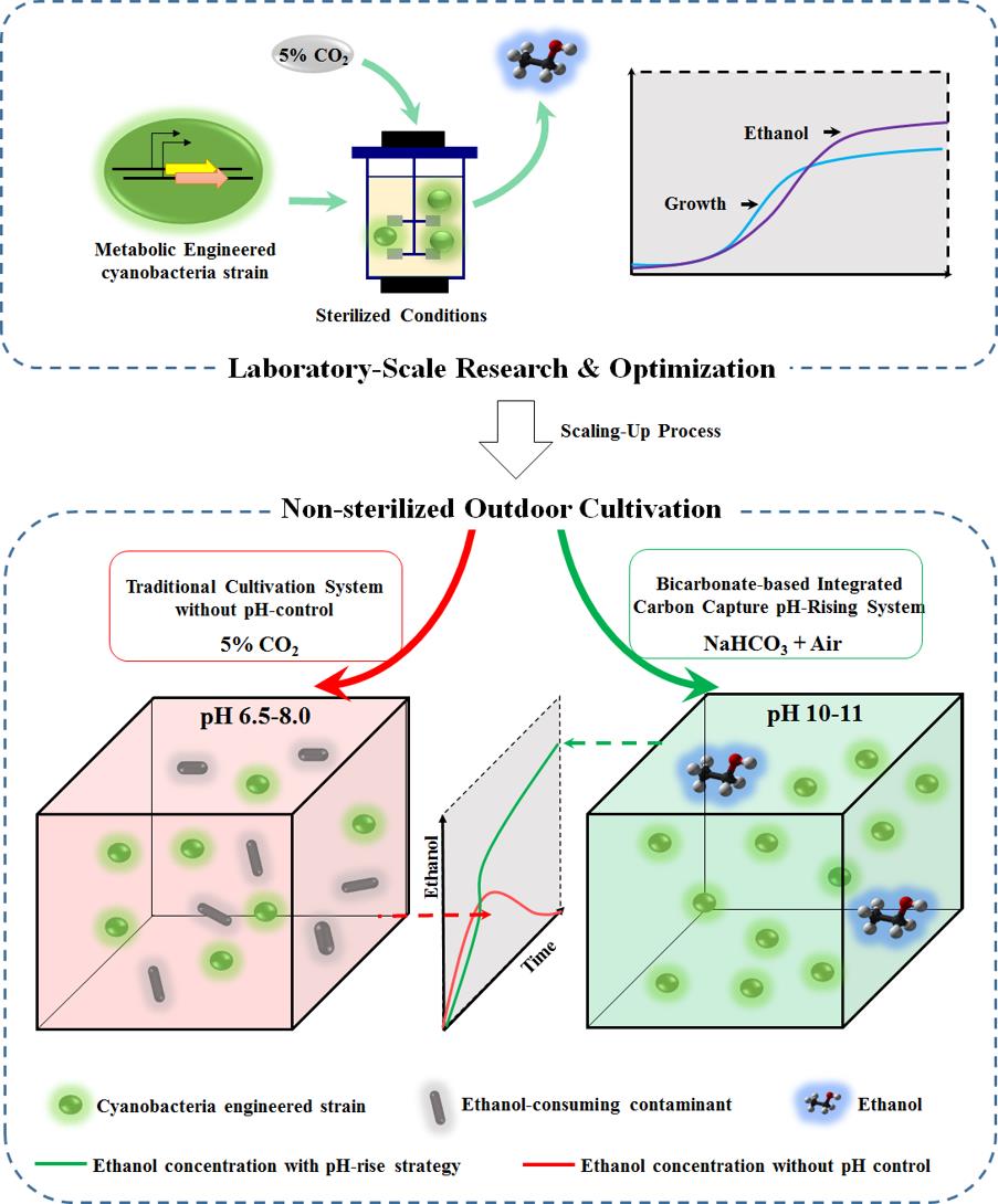 Zhu Z, Luan G*, Tan X, Zhang H, Lu X*. Rescuing ethanol photosynthetic production of cyanobacteria in non-sterilized outdoor cultivations with a bicarbonate-based pH-rising strategy. Biotechnology for Biofuels, 2017, 10:93.