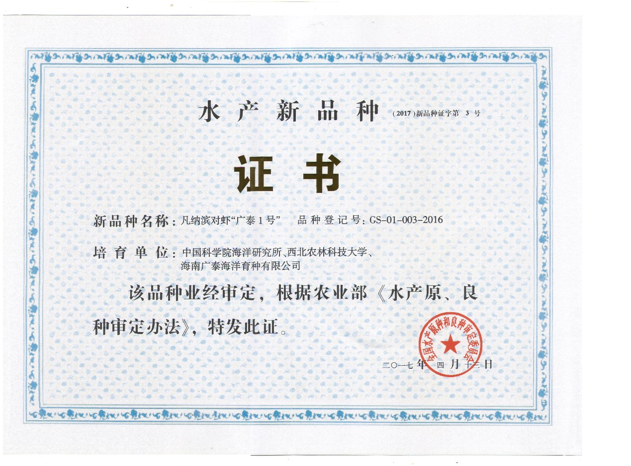 近日,農(nóng)業(yè)部公布了2017年通過審定的14個(gè)水產(chǎn)新品種,由中科院海洋研究所與西北農(nóng)林科技大學(xué)、海南廣泰海洋育種有限公司合作培育的凡納濱對(duì)蝦“廣泰1號(hào)”榜上有名。這是海洋研究所自凡納濱對(duì)蝦“科海1號(hào)”后又一通過審定的凡納濱對(duì)蝦新品種。