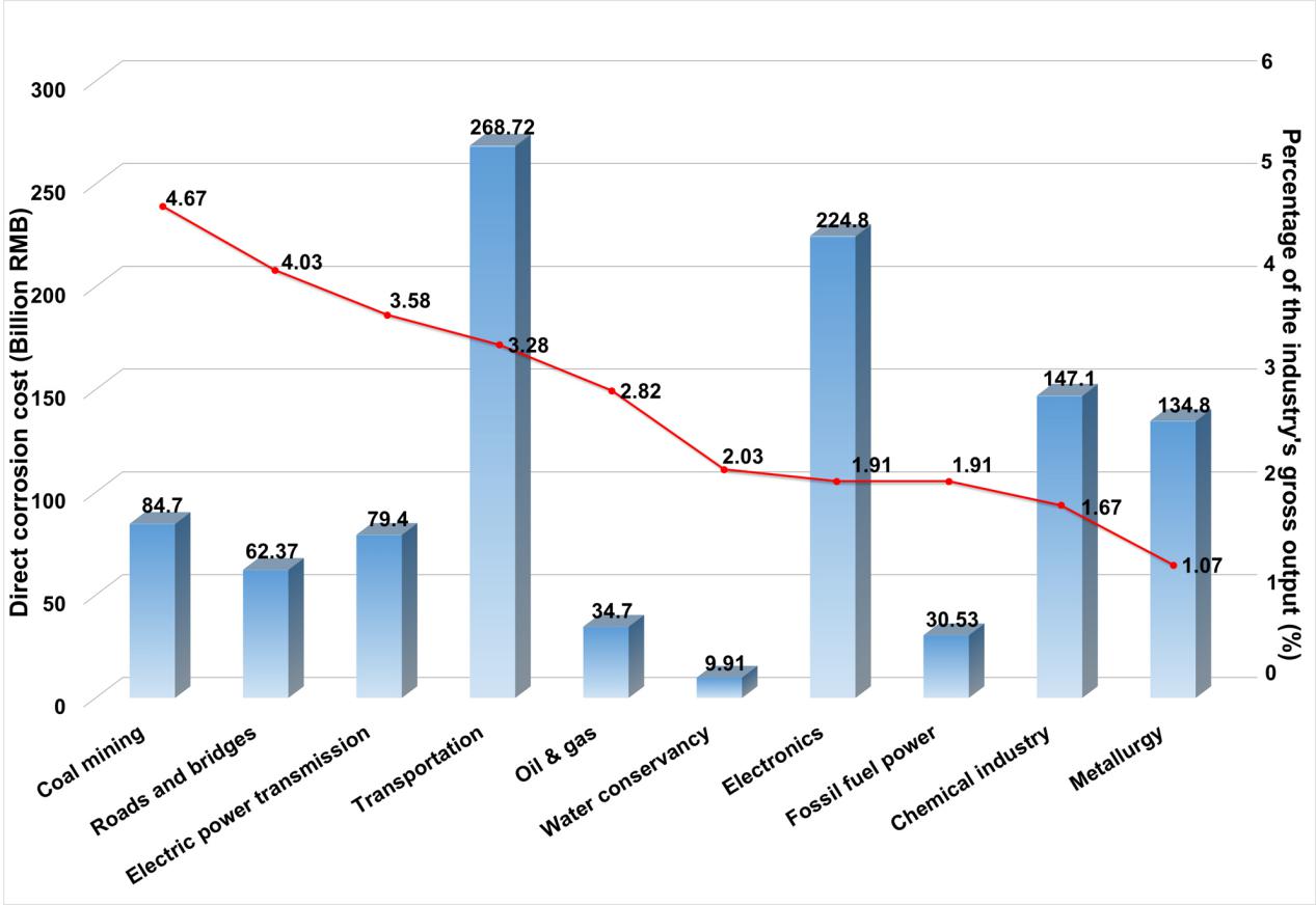 “我國腐蝕狀況及控制戰略研究”項目由中國科學院海洋研究所、中國腐蝕與防護學會、北京航空航天大學、南京水利科學研究院、中國解放軍裝甲兵工程學院共同完成,中國科學院海洋研究所侯保榮院士擔任項目首席科學家。項目組通過發放問卷、實地調研、專家咨詢、電話訪談、學術討論、大會交流、查閱文獻、國外考察等方式獲得了大量可靠數據,在對5大領域、30多個行業調查基礎上,參考國內外分析、計算經驗,聯合中國腐蝕防護學會進行了數據分析和計算,獲得了我國2014年腐蝕成本數據,并摸清了我國腐蝕及控制的基本狀況。