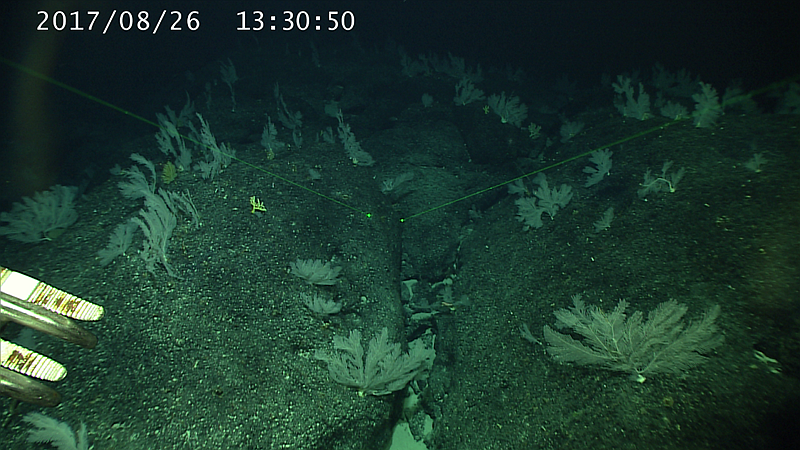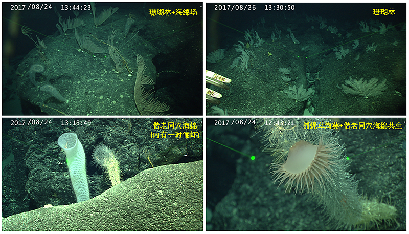 通過該航次,國際上首次在熱帶西太平洋寡營(yíng)養(yǎng)海域的深海底發(fā)現(xiàn)“珊瑚林”和“海綿場(chǎng)”。深海“珊瑚林”和“海綿場(chǎng)”通常見于南北緯30度至兩極,在南北緯20度之間的寡營(yíng)養(yǎng)海域尚未見報(bào)道。本航次通過ROV的近地精細(xì)觀察,在東側(cè)海嶺上發(fā)現(xiàn)了大片的“珊瑚林”和“海綿場(chǎng)”,珊瑚和海綿又為其他生物提供了優(yōu)良的附著基和生境,進(jìn)而形成海山高生物量和高生物多樣性的壯觀場(chǎng)景。