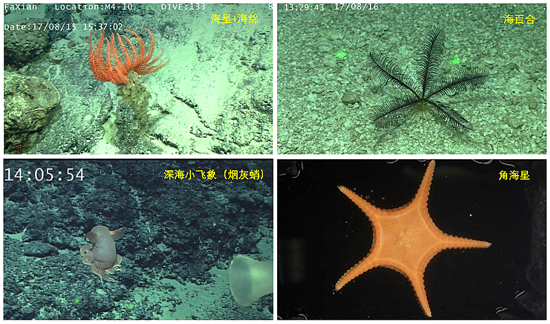 卡羅琳海山位于卡羅琳洋脊區(qū),處于馬里亞納海溝的南側(cè),雅浦海溝的東側(cè),此前尚未被調(diào)查過。本調(diào)查通過多波束地形掃描,獲得了10米級(jí)的高精度海山地形圖。利用溫鹽深儀、垂直拖網(wǎng)和分層拖網(wǎng)等完成了海山“十”字?jǐn)嗝?/span>22個(gè)站位的水文、化學(xué)和生物生態(tài)調(diào)查。利用“發(fā)現(xiàn)”號(hào)遙控?zé)o人潛水器(ROV)下潛15次,獲取巨型和大型底棲生物樣品近400個(gè),涉及柳珊瑚、海葵、海綿、海膽、海星、蛇尾、甲殼動(dòng)物和軟體動(dòng)物等170多種生物,包括許多未知的新物種;獲得了41塊巖石和12個(gè)站位的沉積物樣品,以及大量原位實(shí)測(cè)數(shù)據(jù)和影像資料,填補(bǔ)了國際上在卡羅琳洋脊區(qū)海山調(diào)查的空白。