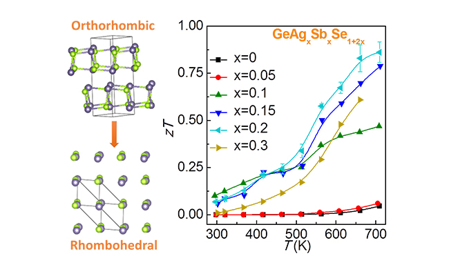 近日,中國科學院大連化學物理研究所催化基礎國家重點實驗室姜鵬研究員、包信和院士團隊(502組)在熱電材料研究中取得新進展,采用高熵合金提高晶體結構對稱性的策略,成功調控GeSe晶體結構,大幅度提高GeSe材料的熱電性能。相關研究成果發表在《德國應用化學》(Angew. Chem. Int. Ed., DOI: 10.1002/anie.201708134)上。