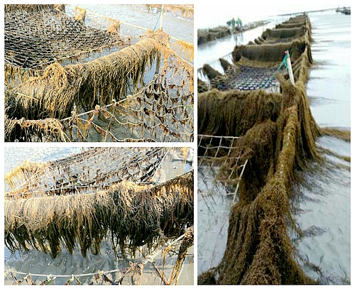 銅藻(Sargassum horneri)是一種常見的潮下帶大型褐藻,定生于海底巖礁上,單棵銅藻長度可達10m、重量可達5kg以上,主要分布于浙江、福建沿海島嶼周圍。從2010年開始,在我國黃、東海發現有大量漂浮銅藻,以2016年最多。這些漂浮銅藻交纏在江蘇灘涂的條斑紫菜養殖伐架上,給紫菜養殖產業帶來了嚴重的經濟損失。長久以來尚沒有足夠的生物學證據來解答“漂浮銅藻從何而來”這個問題。國家藻類產業技術體系研發中心依托單位中國科學院海洋研究所海藻種質庫科研團隊針對這個問題開展了多年的樣品收集和微衛星開發及分析工作,取得重要進展。