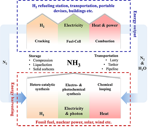 氨是一種重要的化工原料,主要用于生產化肥。同時,氨亦可成為一種清潔高效的“能源載體(Energy Carrier)”。近期,日本JST和美國DOE先后啟動了“戰略創新推進計劃(SIP)”和“利用可再生能源制取液體燃料(REFUEL)”項目用以資助與氨的合成、運輸與轉化相關的研發。
