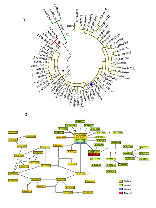 銅藻分子系統數構建和核酸型網絡分析