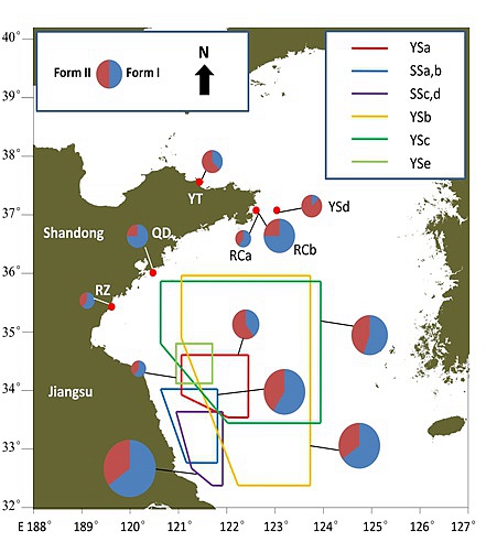 本研究在鰲山科技創新計劃項目“近海生態災害發生機理與防控策略”資助下,通過2016年、2017年多個航次的實地以及沿岸調查,對黃海海域及沿岸出現的漂浮銅藻進行了大范圍時空取樣和系統分析。研究發現:2017年春季在蘇北海區出現的大規模漂浮銅藻,其成熟期在種群內部存在顯著差異,且成熟的藻體更易沉到海底,難以完成生殖過程。通過新開發的多個分子分型標記,首次發現2016-2017年不同季節出現在我國黃海不同地域的巨大銅藻生物量僅有2個優勢核酸型構成,遺傳多樣性極低,來自多個分子標記的數據表明在江蘇紫菜養殖區的銅藻與在榮成地區海帶養殖筏架上的銅藻遺傳多樣性一致。研究結果為追蹤漂浮銅藻的來源和認識成災銅藻種群的分布提供了關鍵的遺傳學信息和分子生物學方法,有助于銅藻金潮的防控和治理。
