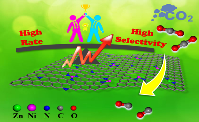 過渡金屬-氮-碳復(fù)合材料是一類有望替代貴金屬的電催化材料,該研究團(tuán)隊(duì)近期致力于該類材料的可控制備及其電催化性能研究(Energy Environ. Sci.,Nano Energy,ACS Catal.)。前期研究表明,過渡金屬-氮-碳復(fù)合材料可將CO2電催化還原生成CO,但隨著過電勢(shì)增加,競(jìng)爭(zhēng)性的析氫反應(yīng)(HER)電流急劇增大,造成CO法拉第效率迅速下降,很難獲得高的CO分電流密度。因此同時(shí)獲得高的CO2RR電流密度和法拉第效率是過渡金屬-氮-碳復(fù)合材料面臨的重要挑戰(zhàn)。