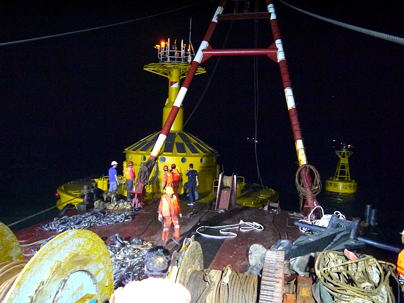晚11:45,第三套保護(hù)小浮標(biāo)和15米大浮標(biāo)鏈接完成并順利布放。