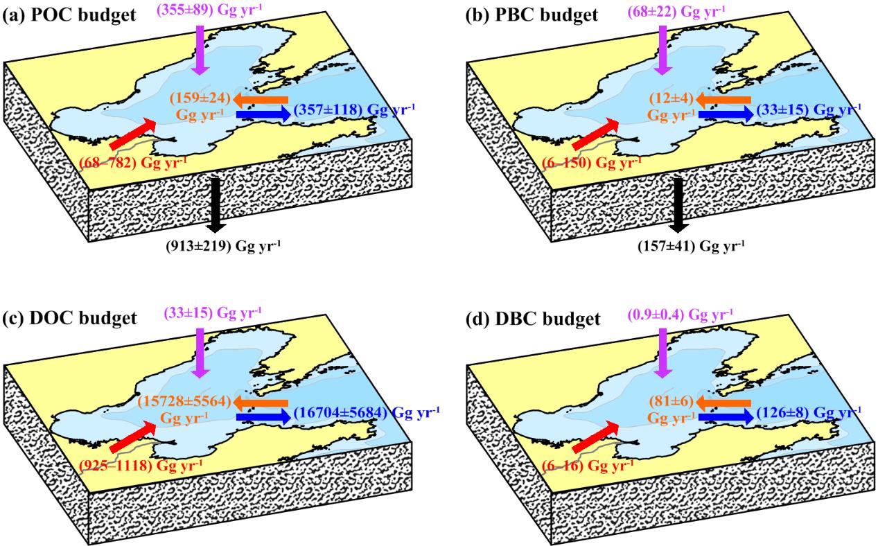 圖3 渤海有機碳和黑碳的循環和收支研究以亮點文章在GBC上發表