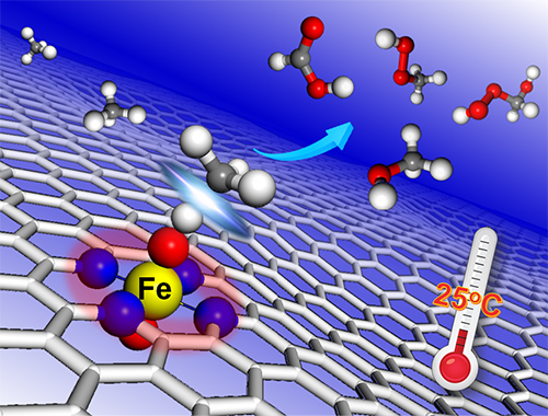 近日,中國科學院大連化學物理研究所催化基礎國家重點實驗室研究員鄧德會和院士包信和帶領的研究團隊在長期深入研究二維催化材料和納米限域催化的基礎上,發現石墨烯限域的單原子鐵中心可以在室溫條件下(25 C)直接將甲烷催化轉化為高附加值的C1含氧化合物。相關結果以全文形式發表于Cell Press旗下的《化學》(Chem)期刊上。