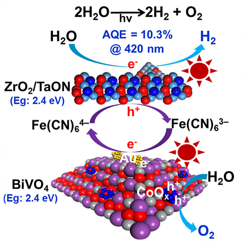 近日,中國科學院大連化學物理研究所太陽能研究部院士李燦、研究員章福祥等在寬光譜捕光催化劑Z機制全分解水制氫研究中取得新進展。研究結果發現,通過設計和調控BiVO4表面助催化劑Au的擔載,以及雙助催化劑(Au和CoOx)的選擇性負載,可有效促進BiVO4的產氧性能及其與氧化還原電對離子間的電荷傳輸,并基于此構筑了高效的可見光Z機制全分解水體系,其表觀量子效率超過10%(420nm激發)。相關結果在線發表在Cell旗下的《焦耳》(Joule)期刊上。