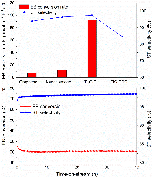 圖2 Ti3C2TxMXene的乙苯脫氫活性測試