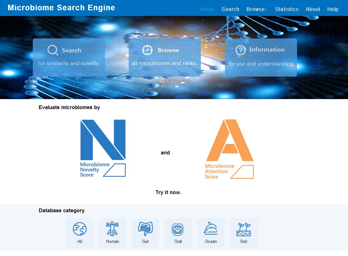 微生物組是微生物在自然界的存在形式,與人體、空氣、土壤與海洋的健康息息相關。因此,微生物組科學與產業已經成為國際科技合作與競爭的“戰略高地”。然而,大數據挖掘工具的匱乏,阻礙著微生物組研究從“數據分析”向“數據科學”的跨越。2010年,來自43個國家的500多名研究人員聯合啟動了“地球微生物組計劃”(Earth Microbiome Project; EMP),對全球微生物組的多樣性進行系統性調查,已經發表了第一階段的成果(Thompson, et al., Nature, 2017)。而各國政府歷年來陸續啟動的“人體微生物組計劃”(Human Microbiome Project; HMP)與“美國國家微生物組計劃”(National Microbiome Initiative; NMI)等,也同樣產出了海量的菌群數據。這些以元基因組為代表的微生物組數據類型多樣、來源迥異、體量龐大,而且其數量正在以指數型增長。但是,大數據挖掘工具的匱乏,導致新的數據難以與原有的海量數據進行快速的比對,針對整個微生物組數據空間的全局性認識更是無從談起。