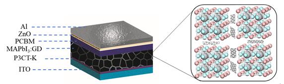 圖:石墨炔作為主體材料所制備的鈣鈦礦器件結(jié)構(gòu)及光電性能