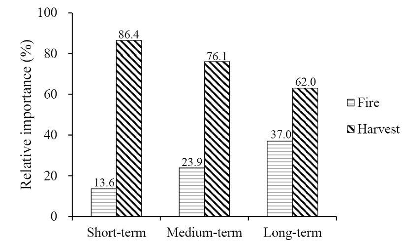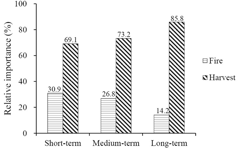 圖2. 林火和采伐對大興安嶺森林地上碳儲量的影響