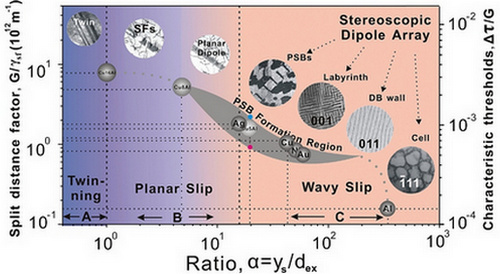 圖1 控制FCC金屬材料疲勞后形成不同位錯組態的統一演化因子