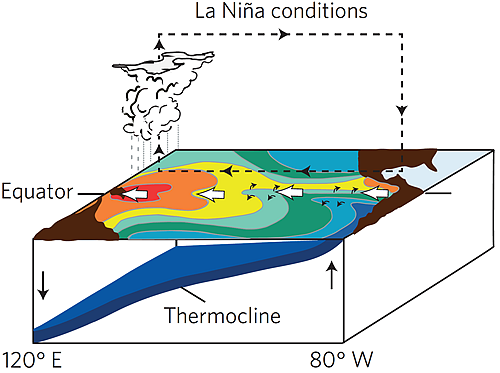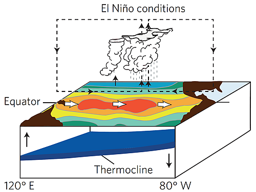 厄爾尼諾(左)和拉尼娜(右)事件示意圖(McPhaden, 2015)