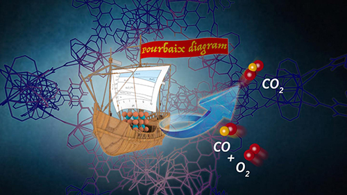 近日,劍橋大學(xué)的材料科學(xué)家利用無機(jī)化學(xué)中的普爾貝圖(Pourbaix Diagram),發(fā)展出一個普適的在納米孔內(nèi)合成客體材料的有效方法(Pourbaix Enabled Guest Synthesis/普氏客體合成法),實(shí)現(xiàn)了在MOF孔內(nèi)填充氧化釕納米結(jié)構(gòu)。利用這一材料,大連化物所研究人員發(fā)現(xiàn)在零維納米孔反應(yīng)器中的限域效應(yīng)可以弱化CO和O在氧化物表面上的吸附,使得該氧化物結(jié)構(gòu)表現(xiàn)出獨(dú)特的低溫催化CO氧化性能,說明零維納米空間中微環(huán)境限域可以弱化表面吸附并增強(qiáng)催化性能。這一結(jié)果與一維(J Am Chem Soc,2015)和兩維(PNAS,2017)納米空間中發(fā)現(xiàn)的限域催化效應(yīng)一致。