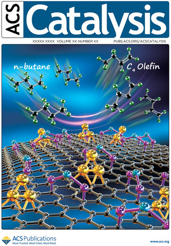金屬所沈陽(yáng)材料國(guó)家研究中心聯(lián)合研究部劉洪陽(yáng)副研究員和研究生張家雲(yún)等人組成的納米碳材料負(fù)載金屬催化劑研究小組與北京大學(xué)馬丁教授、香港科技大學(xué)王寧教授等團(tuán)隊(duì)合作,通過(guò)金屬鉑(Pt)與富缺陷石墨烯載體之間相互作用的調(diào)控以及第二組分錫(Sn)的引入,在納米金剛石/石墨烯碳載體上制備出原子級(jí)分散的全暴露Pt納米團(tuán)簇催化劑,進(jìn)一步的研究發(fā)現(xiàn)該原子級(jí)分散的PtSn催化劑在催化正丁烷脫氫制烯烴中表現(xiàn)出優(yōu)異的催化活性和穩(wěn)定性。近日,《美國(guó)化學(xué)會(huì)催化》(ACS Catalysis) 以封面的形式發(fā)表了該項(xiàng)研究成果(DOI:10.1021/acscatal.9b00601)。