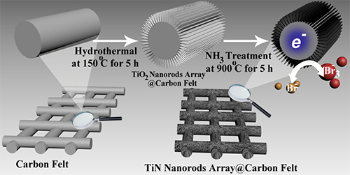 大連化物所研發(fā)出應(yīng)用于鋅溴液流電池的高活性氮化鈦納米棒陣列復(fù)合電極材料