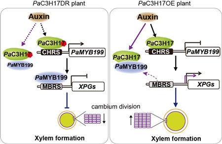 圖1 生長素促進PaC3H17-PaMYB199雙重調控木材形成的模型