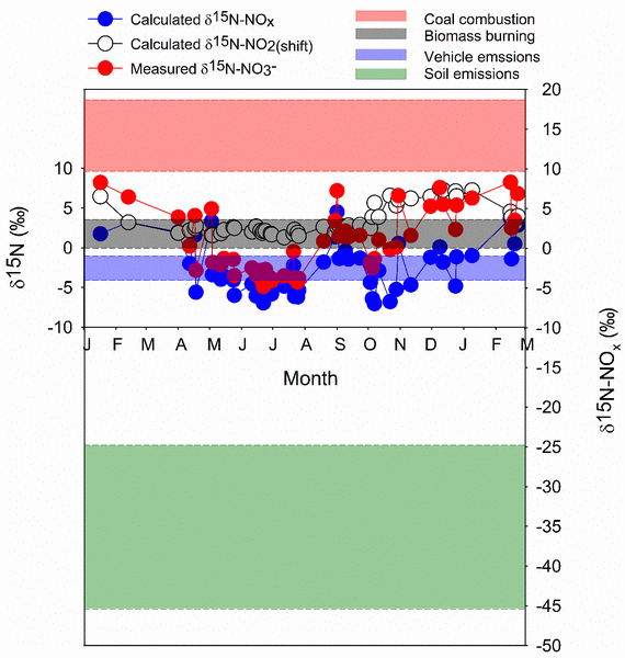 大氣硝酸鹽是大氣氮氧化物的匯,可通過沉降的方式進入陸地和海洋生態系統并成為生態系統重要的氮來源。氮沉降量增加過度會產生一系列生態環境問題,如土壤酸化、水體富營養化等。我國由于經濟高速發展,硝酸鹽的前體物質NOx排放不斷增加,是氮沉降量增加的重要因素。因此了解不同排放源對大氣無機氮的貢獻,有助于政府制定控制NOx排放的政策與措施。目前研究表明,氮穩定同位素自然豐度技術是快速、及時解析不同源對大氣氮氧化物貢獻的有效手段。然而由于硝酸鹽形成過程中存在同位素分餾作用的影響,精確量化不同排放源對大氣NO3-的貢獻仍存在困難。