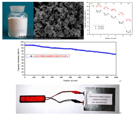 含鍺(Ge)硫化物固體電解質(2011年由日本東京工業大學,菅野了次教授發明)由于其獨特的三維網狀晶體結構,鋰離子可以沿C軸一維傳導,從而獲得高達10-2 S cm-1的離子電導率,已經可以媲美甚至超過液體電解質的離子電導率。由武建飛研究員帶領的先進儲能材料與技術研究組長期致力于硫化物固體電解質及全固態電池的相關研究。近期成功開發出多體系硫化物固體電解質和高性能固態電池,固體電解質的離子電導率達到10-2~10-4 S cm-1;鍺系和鹵族元素系固體電解質已經實現了中試批量生產;固態電池常溫1000圈0.5C容量保持70.05%,5C充電容量保持率達79.28%,具有優異的循環和倍率性能。研究組針對電極與固體電解質間的界面問題進行了詳細研究,為固態電池的放大生產提供了理論依據和技術指導。下一步研究組計劃逐步實現軟包電池大規模制備。