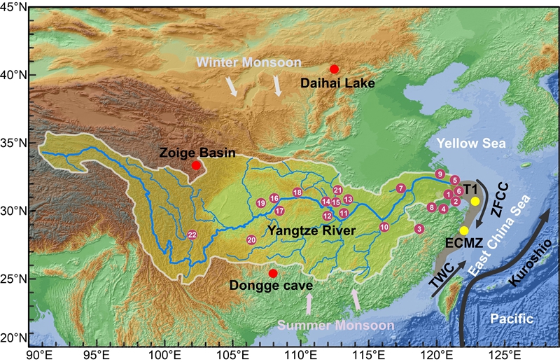 長江流域、東海區域概況及研究站位圖